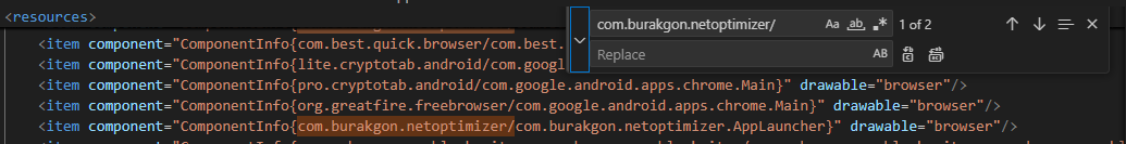Be sure to change the drawable name so that it's the same as the already existing one, in our case "browser".
